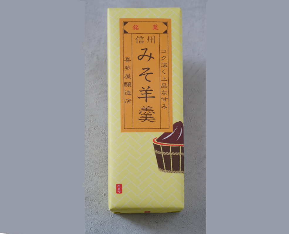 喜多屋自慢の味噌「雪娘赤」を贅沢に用い、余計なものを加えず、じっくりと練り上げた羊羹です。